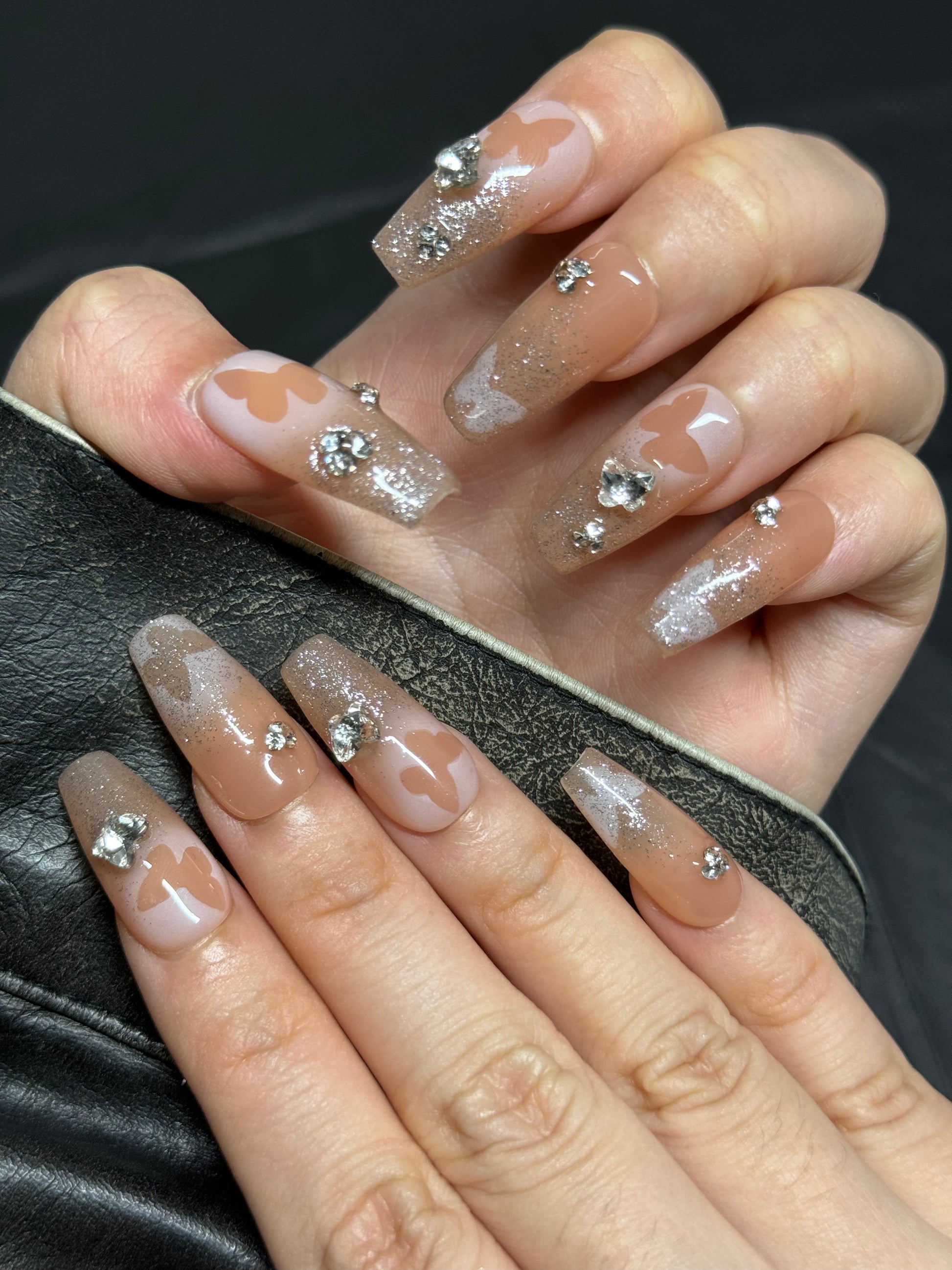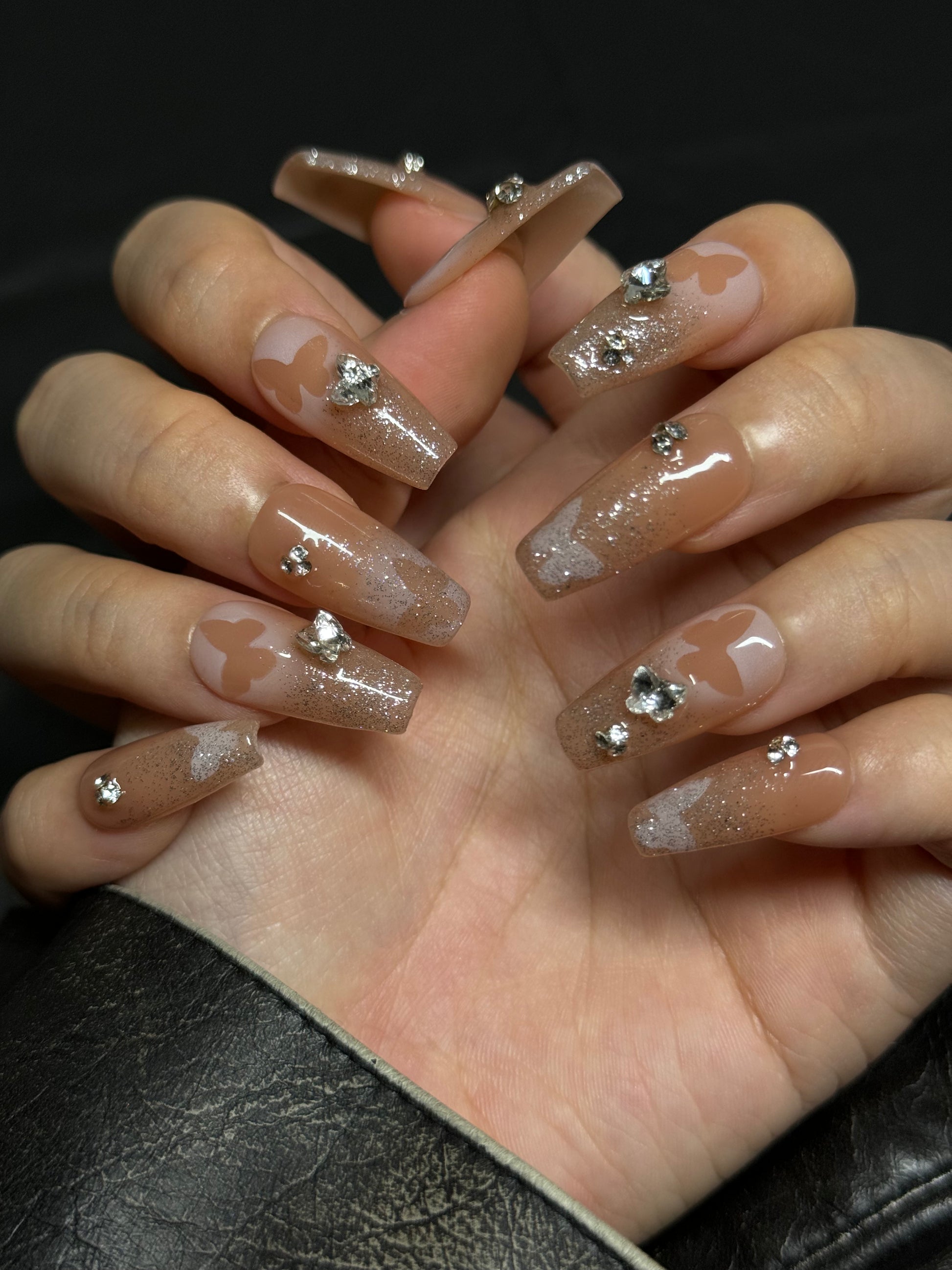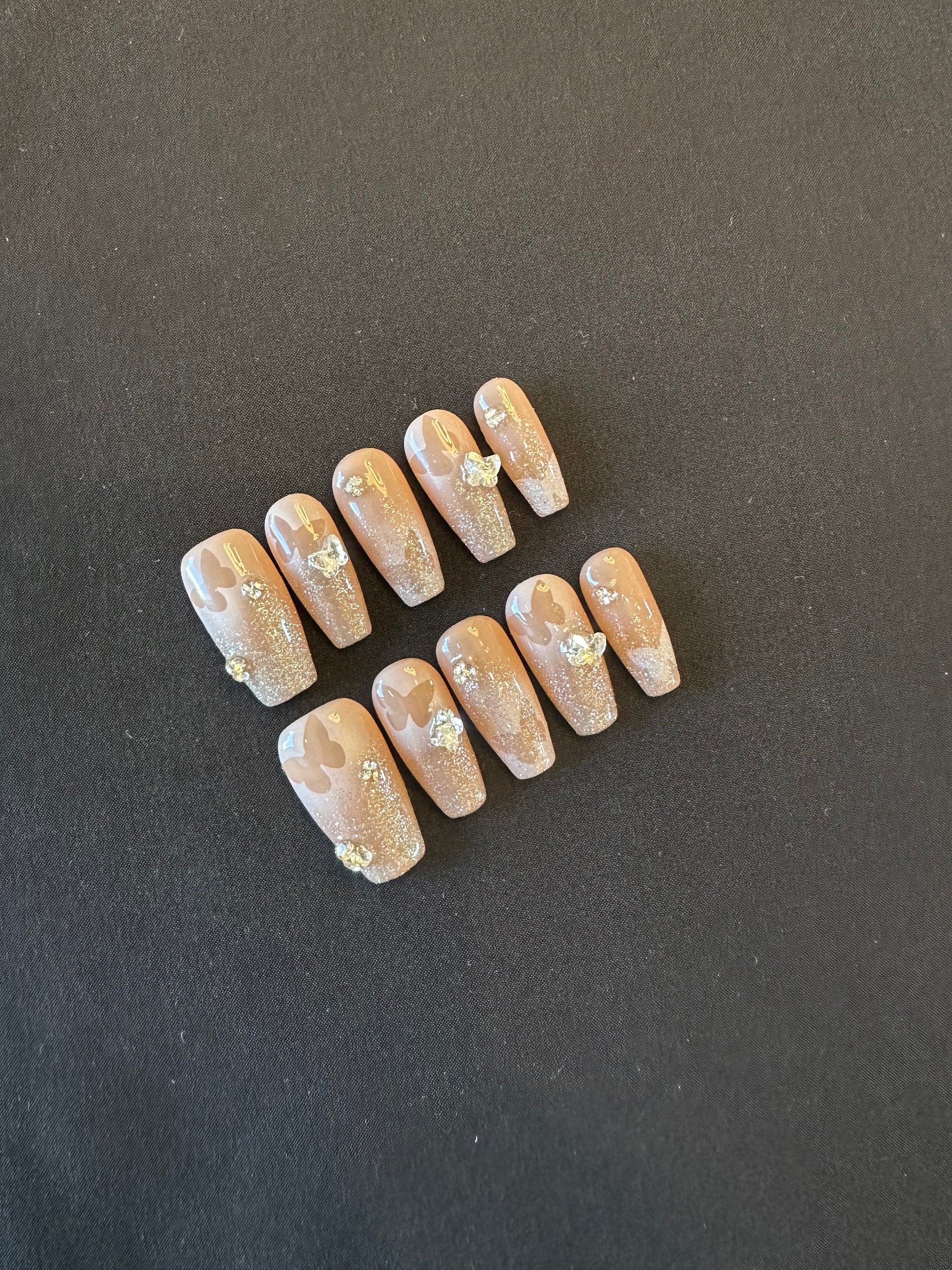 With a subtle nude palette with shimmering accents, design is inspired by the light and graceful beauty of butterflies, elegantly dancing on the fingertips.